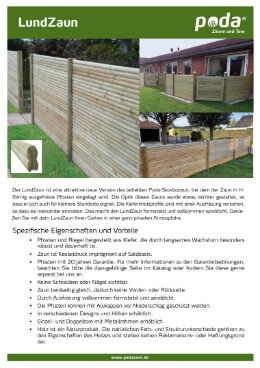 Der LundZaun ist eine attraktive neue Version des beliebten Poda-Skovbozaun, bei dem der Zaun in H-förmig ausgefräste Pfosten eingelegt wird. Die Optik dieses Zauns wurde etwas leichter gestaltet, so dass er sich auch für kleinere Standorte eignet. Die Kiefernholzprofile sind mit einer Ausfräsung versehen, so dass sie ineinander einrasten. Das macht den LundZaun formstabil und vollkommen winddicht. Genießen Sie mit dem LundZaun Ihren Garten in einer ganz privaten Atmosphäre.